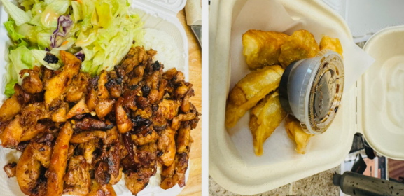 Chicken Yakisoba with our “Secret” sauce with White Rice and Stir Fried Veggies.